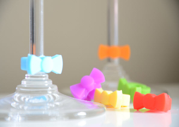 Each reusable set comes with six silicone bow tie charms in red, yellow, purple, blue, green and orange.
