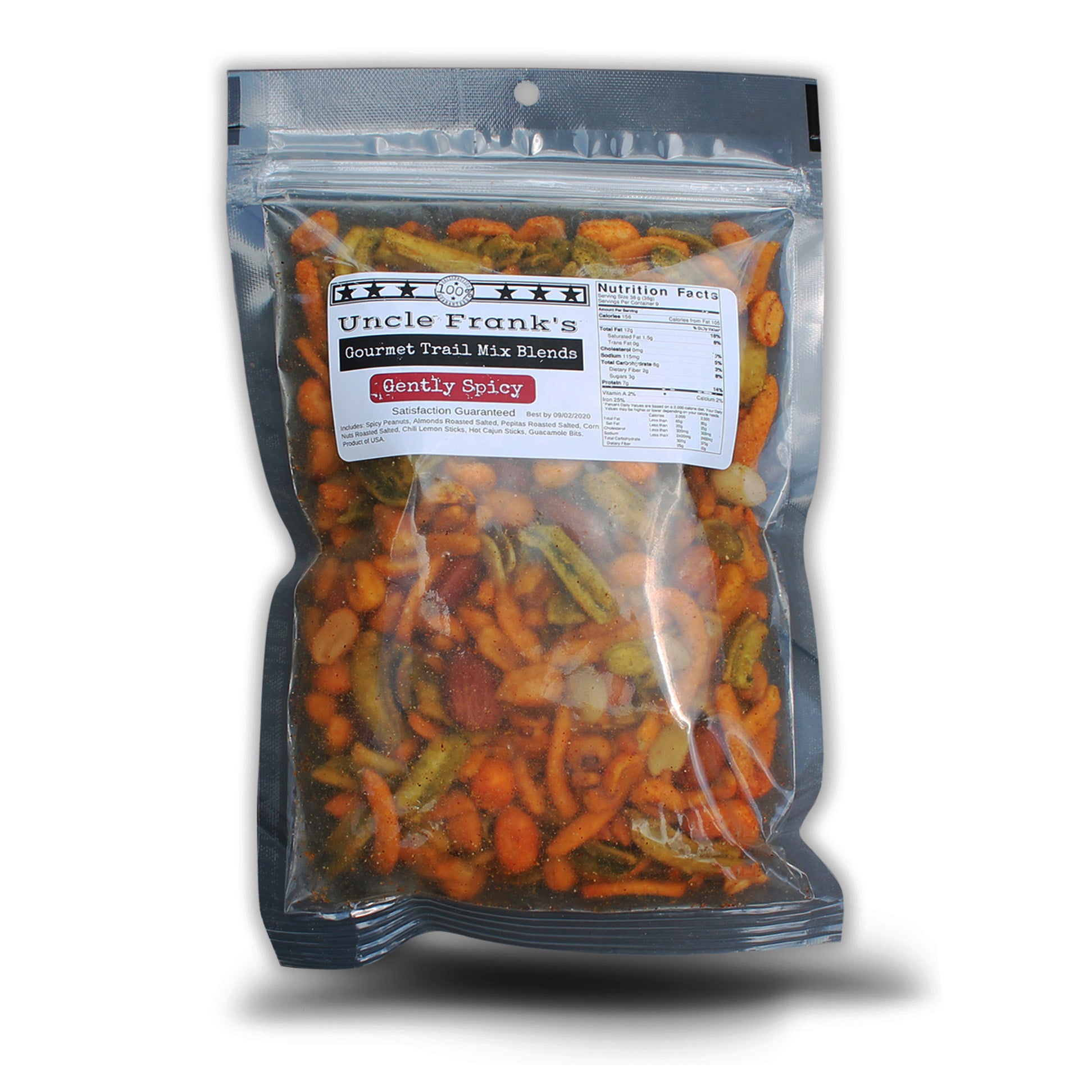 - Ingredients: Spicy Peanuts, Roasted Salted Almonds, Roasted Salted Pepitas, Roasted Salted Corn Nuts, Chili Lemon Sticks, Hot Cajun Sticks, and Guacamole Bits