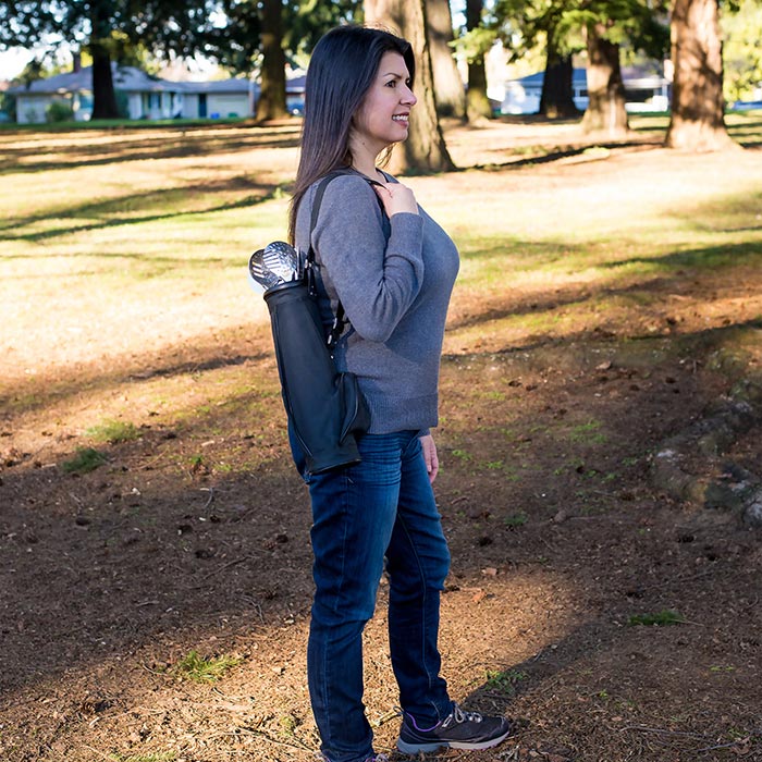 - Golf Bag Carry Case with Zipper Pouch: Our specially designed golf bag tote has a sturdy carrying strap and is meticulously detailed to look like the real thing, right down to the side pocket for the golf ball shakers. It’s compact for travel, but allows plenty of room inside to carry everything you need.