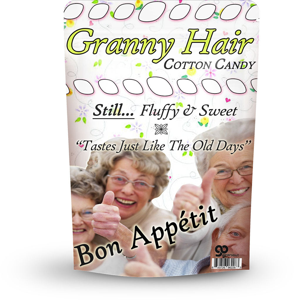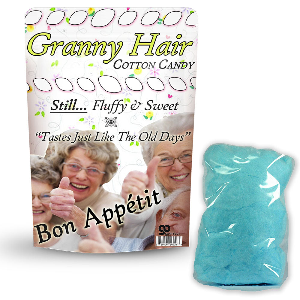 Granny Hair Cotton Candy is a great gag gift for Christmas, retirements, or birthdays. Everyone loves grandma, because she’s so sweet, and, now, so is her awesome blue hair! Share some great tasting Granny Hair Cotton Candy and celebrate the good old days today.