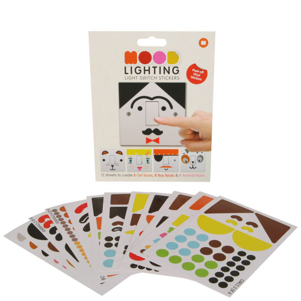 With our Mood Light Switch Stickers you can dress up your light switches to reflect your personality and how you’re feeling each day. And, because the stickers are reusable, you can have loads of fun mixing and matching details from all twelve sheets of amusing possibilities.