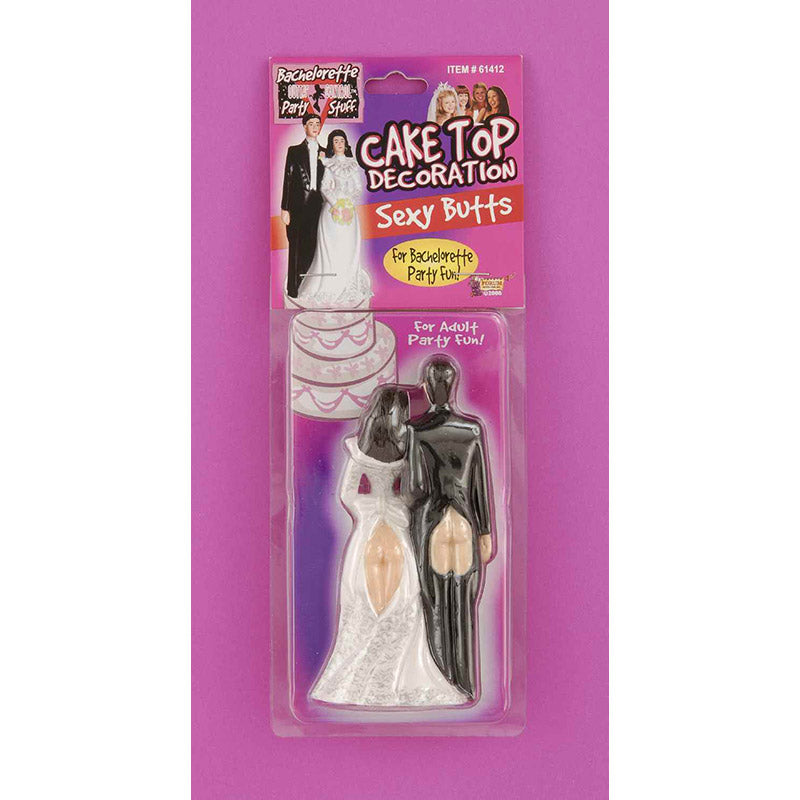 The Sexy Butts Bridal Cake Topper is a perfect accessory to any pre-wedding party. The bride and groom stand stoically while their butts hang out of their ripped wedding attire. When you top your bachelorette party cake with this giggle worthy gag cake topper, people will stop and stare at their naked derrieres and see you’re a group of ladies who knows how to have fun.