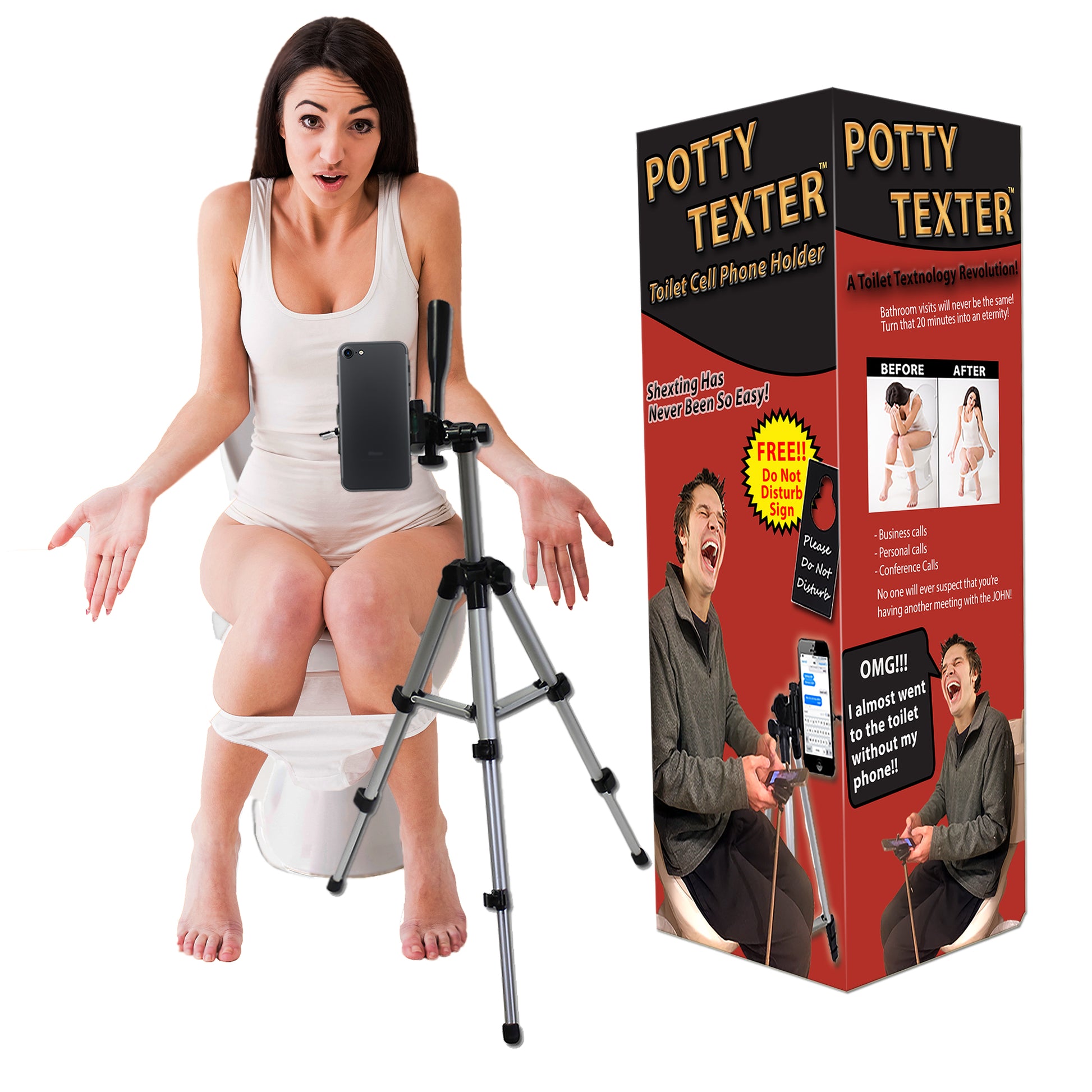 Does a bear poo in the woods? Of course! And, if he had the Potty Texter, he’d text while he squatted too! The compact design makes this hands-free cellphone accessory easy to pack and pop up when and wherever you decide some shexting is in order.