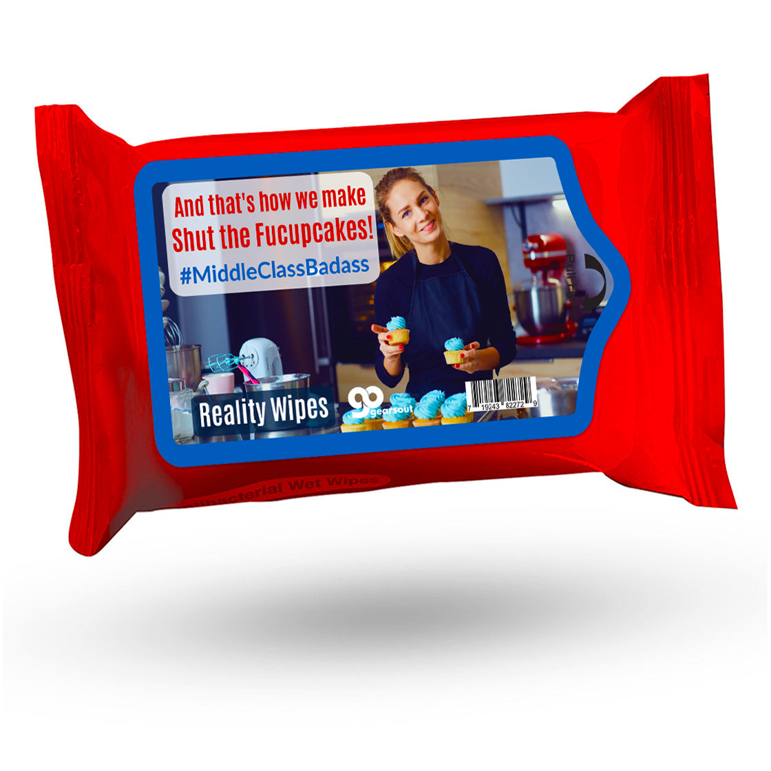 When juggling home, school, work, and desperately trying to find a minute for a social life, the modern woman has to muster her Middle Class Badass. It’s through this superpower that she’s able to keep a smile on her face while performing the never-ending daily duties of motherhood, marriage, and womanhood. Shut the Fucupcakes Wipes are the perfect choice for those of us who wield this status with grace, even while cursing under our breaths.